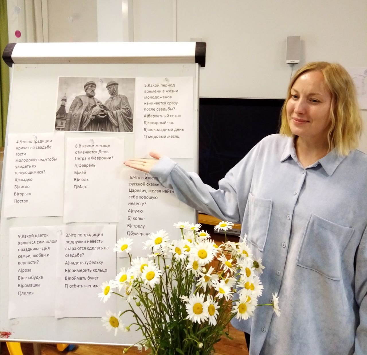 8 июля в отделении социальной реабилитации «Маленькая мама» прошло мероприятие, посвященное Дню семьи, любви и верности. Праздник приурочен к православному Дню памяти святых князя Петра и его жены Февронии Муромских. Сотрудники и молодые мамы вспомнили святую семейную пару, обсудили важность семьи в жизни каждого человека, поддержание семейных ценностей и традиций для воспитания детей. Мероприятие закончилось весёлой викториной.
